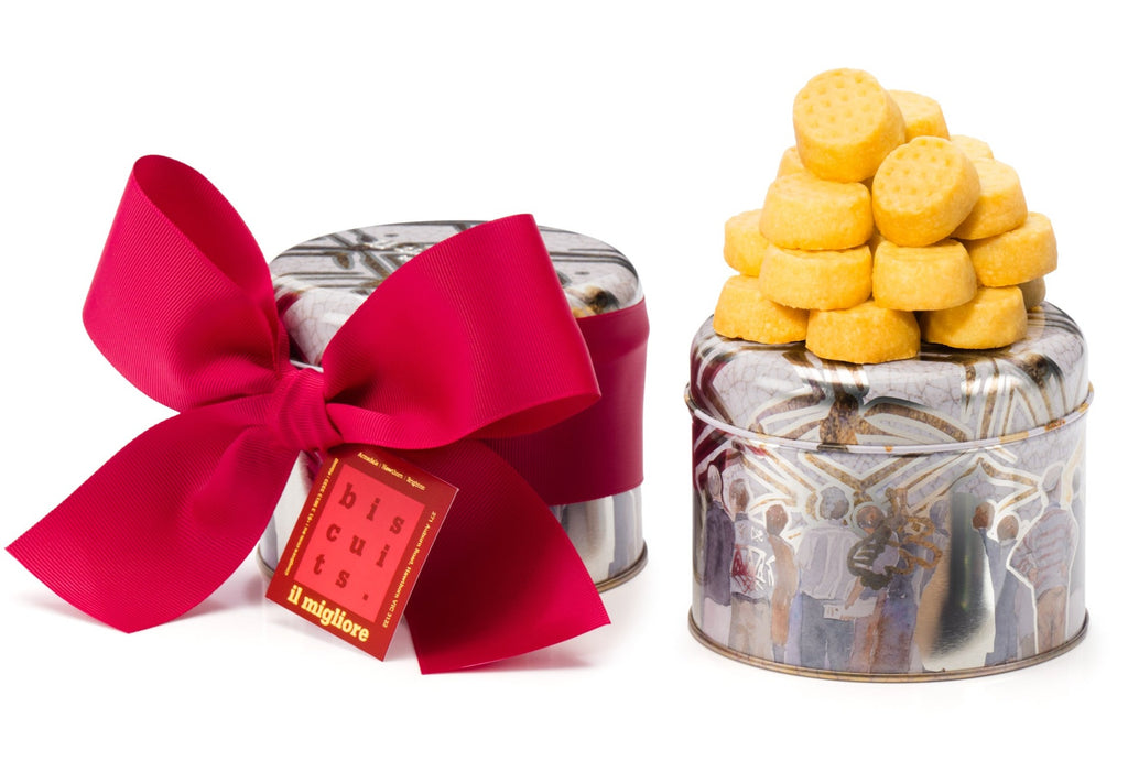Presented in a stunning il migliore air tight tin with metallic gold highlights, sealed with a beautiful Christmas beauty red grosgrain ribbon.