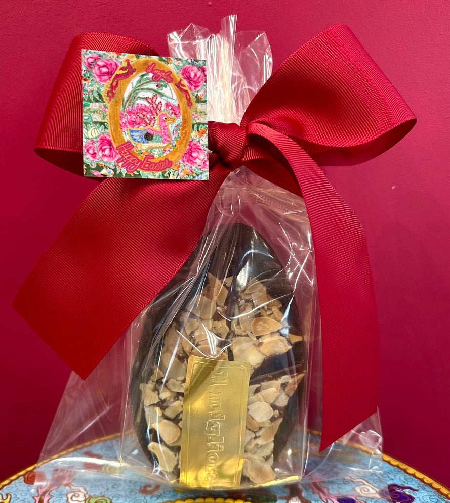 The finest Easter Egg made with 54% Dark couverture Chocolate. Filled with Che Buono, our decadent Salted-Caramel Toffee with Chocolate and Toasted Almonds.