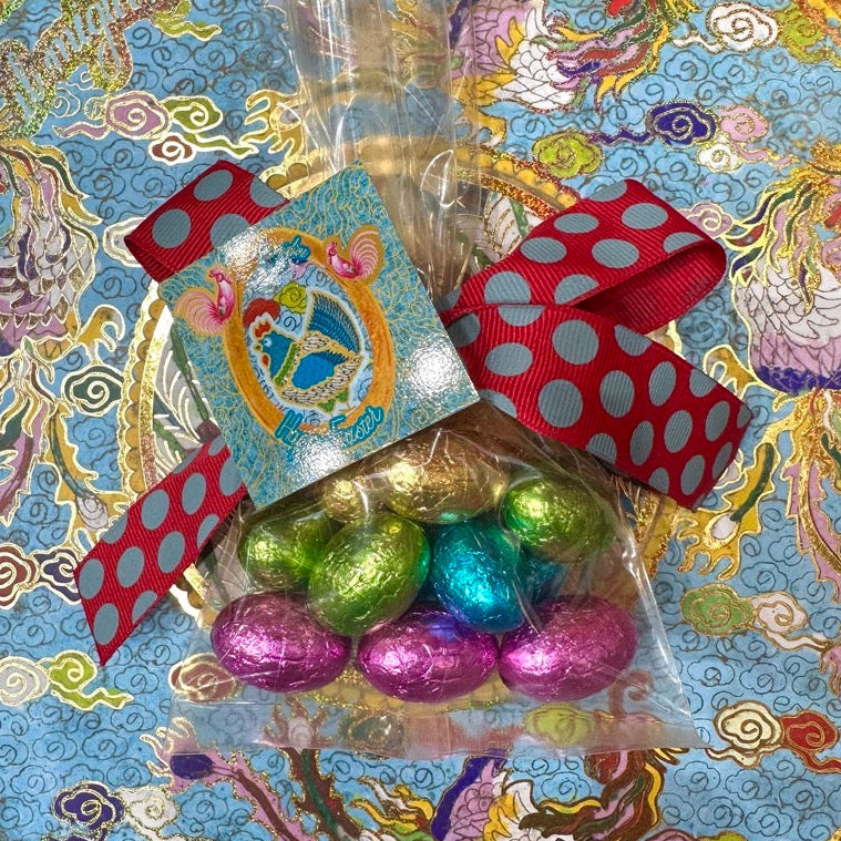 A dozen Milk Chocolate mini Easter eggs in a mix of foil colours