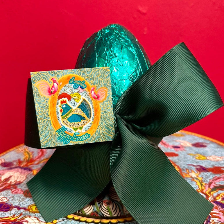 The finest 54% Dark couverture Chocolate combined with Peppermint to create these Beautiful Handmade, Hand-Wrapped and Bowed Decadent Easter Eggs.