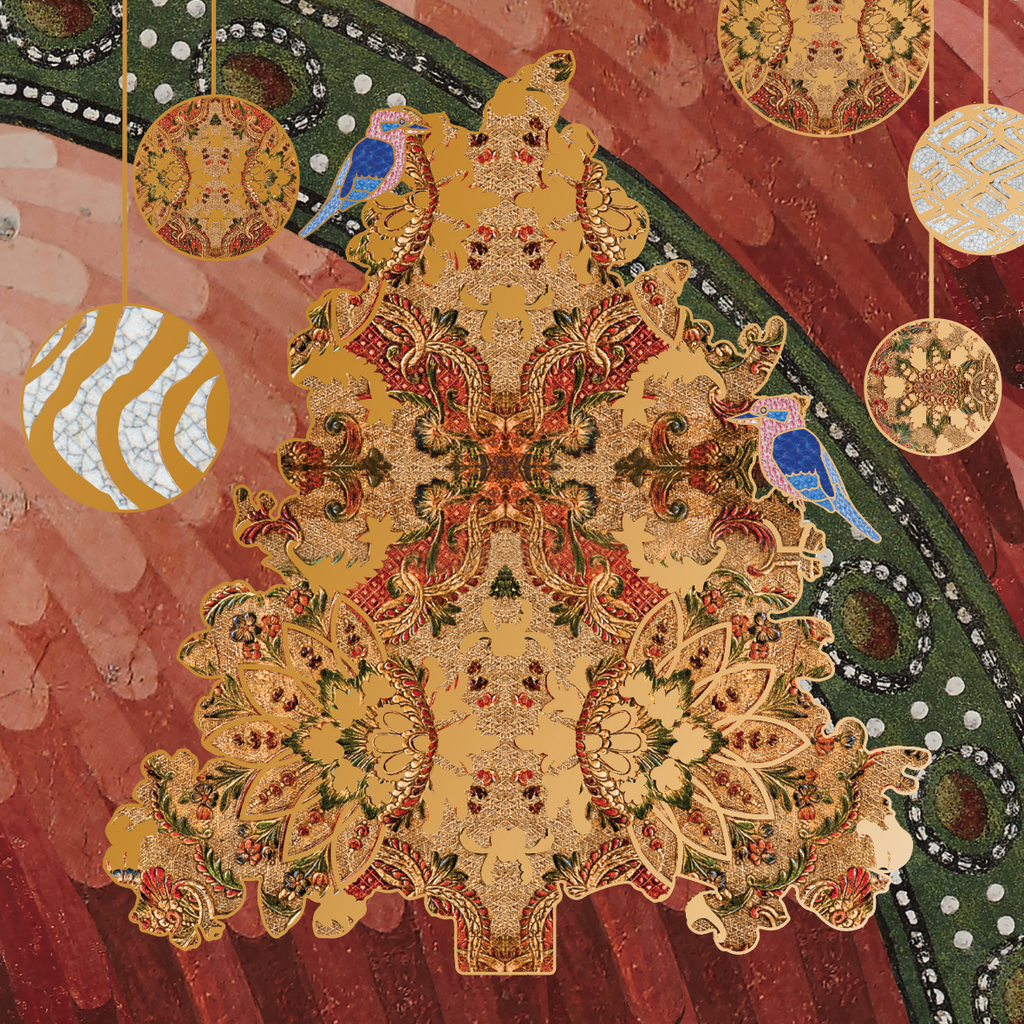 4 Beautiful Christmas Patterned Greeting Cards with gold foil highlights